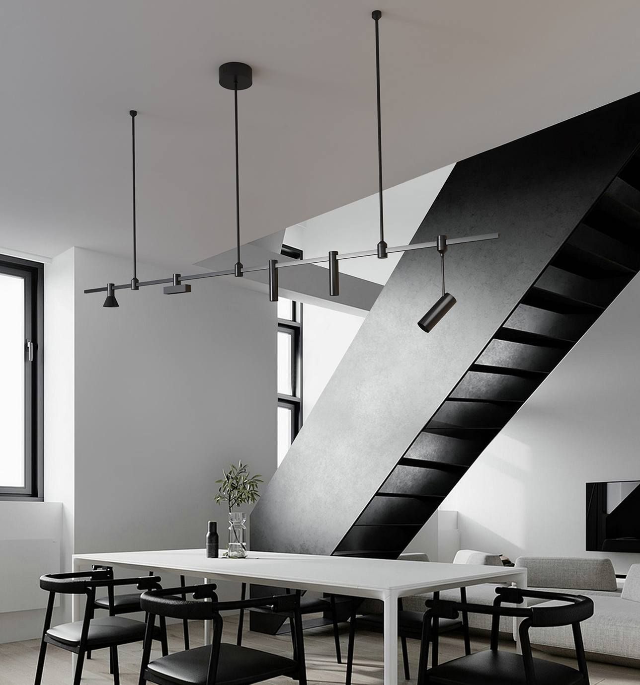 This is an intelligent low-voltage lighting system made of brass for tracks, developed as an intelligent high-end product for space lighting applications. The system adopts the design principle of lamp body conductivity, which changes the traditional method that each lamp head needs to be connected with wires to supply power. The system can not only freely design the lamp body style, but also freely match the lamp head style and quantity, according to the space lighting application needs, the lamp head can freely slide and freely turn on the lamp body track to adjust the lighting position to achieve the best visual effect, the module conductive design can be connected to various intelligent systems to achieve the effect of intelligent control of lighting, suitable for all architectural spaces that need lamps and lanterns for decoration and lighting.